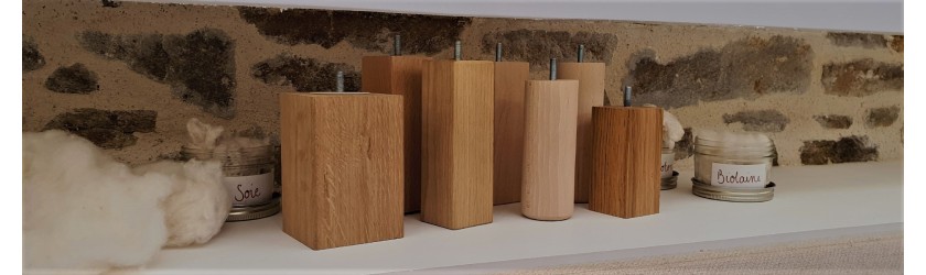 Carrés ou cylindriques, en chêne ou hêtre massif allant de 12cm à 20cm de hauteur.