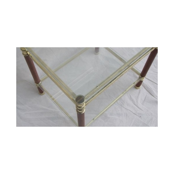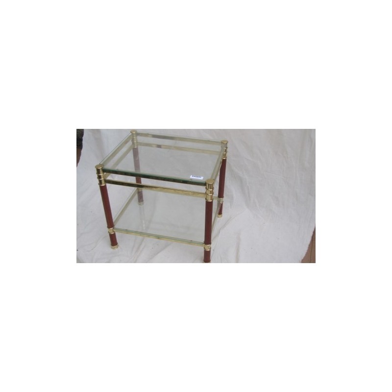 Bout de canapé - Verre avec pieds bois et métal doré - 50x45x40cm