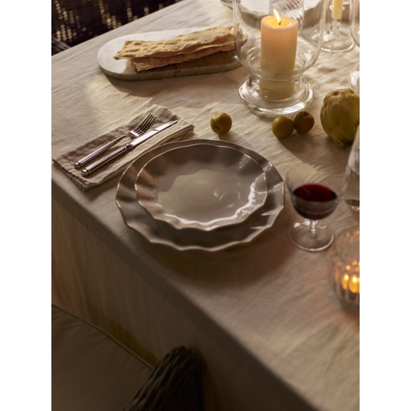 La silhouette organique et ondulée de Sennen apporte une texture unique à toute table. Fabriquée en grès résistant, chaque pièce a été finie avec un vernis réactif appliqué à la main par des artisans qualifiés au Portugal. Utilisez ces assiettes généreuses pour les plats principaux lors de repas décontractés ou raffinés.