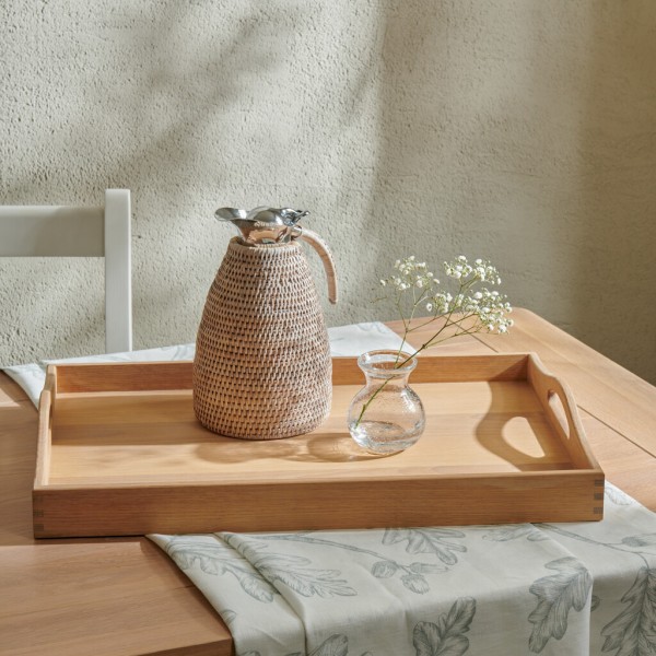 Le plateau Terence est une version nouvelle et améliorée d'un plateau en bois offert en cadeau de mariage à notre cofondateur John et à notre fondatrice créative Emma. Le nom de ce magnifique plateau, qui se distingue par sa qualité et son design épuré, est un hommage à Sir Terence Conran, une icône du design qui a inspiré John et Emma tout au long de leur carrière. L'accent a été mis sur les petits détails : les coins sont renforcés par des assemblages à entures multiples pour le rendre aussi solide et robuste que possible, et les poignées sont soigneusement arrondies pour offrir un toucher ultra-doux et confortable.