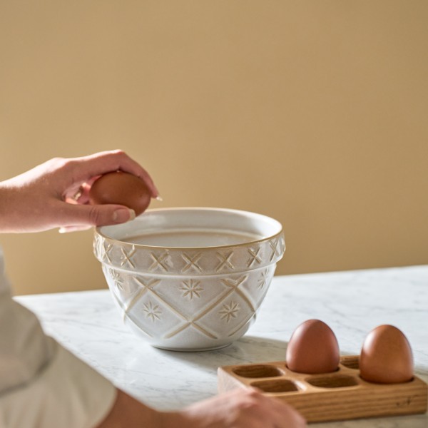 Fabriqué au Portugal en grès de haute qualité, chaque bol est terminé avec un émail réactif appliqué à la main. Doté d’un élégant décor en relief, ce format plus petit est également idéal comme bol à pudding pour partager vos desserts préférés.